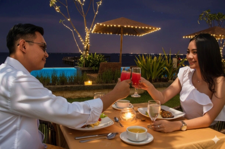 Jika Anda mencari tempat makan malam romantis dengan pemandangan laut yang memukau, Nyiur Resto di Putri Duyung Ancol adalah pilihan yang sempurna. Seaside Valentine Dinner yang digelar pada 13–14 Februari 2026, menawarkan pengalaman kuliner istimewa di tepi laut. Mengusung konsep omakase rasa Indonesia, hidangan disajikan sebagai kejutan dari chef dengan bahan-bahan lokal berkualitas yang diolah dengan sentuhan modern.